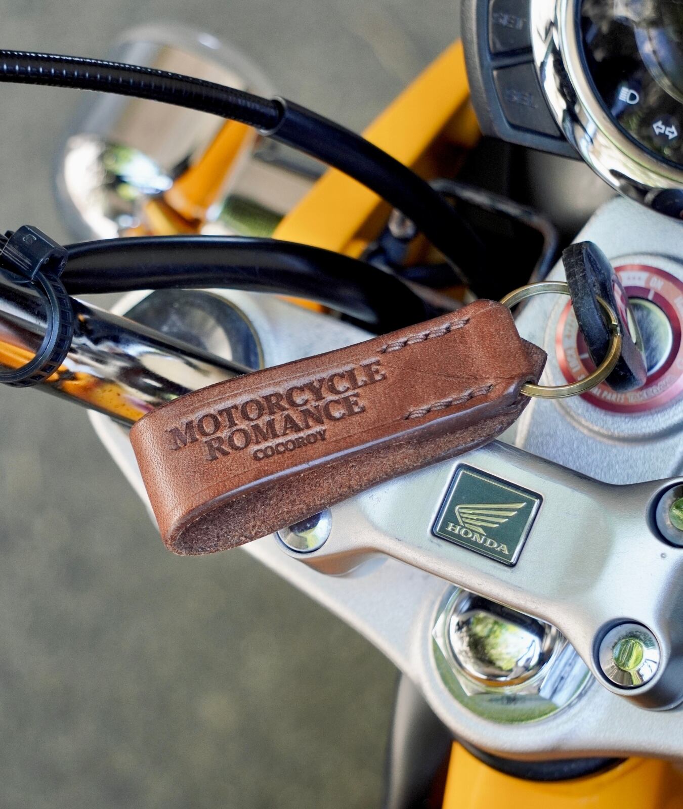 定番OGロゴである「MOTORCYCLE ROMANCE」を刻印し、高級感のある大人のアイテムに仕上がった。